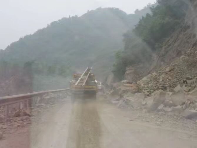 18日的返程路上,搶修車為了讓一輛大型挖掘機(jī)盡快趕往災(zāi)區(qū),避讓到受損的橋上,在挖掘機(jī)后,一大對大噸位的救災(zāi)運(yùn)輸車魚慣而過,持續(xù)了10多分鐘,橋在顫抖,隊(duì)員們的心在顫抖。就在搶險(xiǎn)車過了不久,后方滑坡了。
